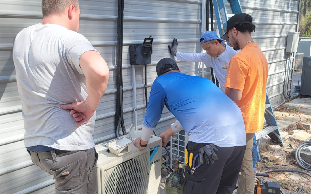 Can you say, “up and running?” I certainly hope so as the group completed the installation (from scratch) a double headed mini split. We are talking, doing it all!